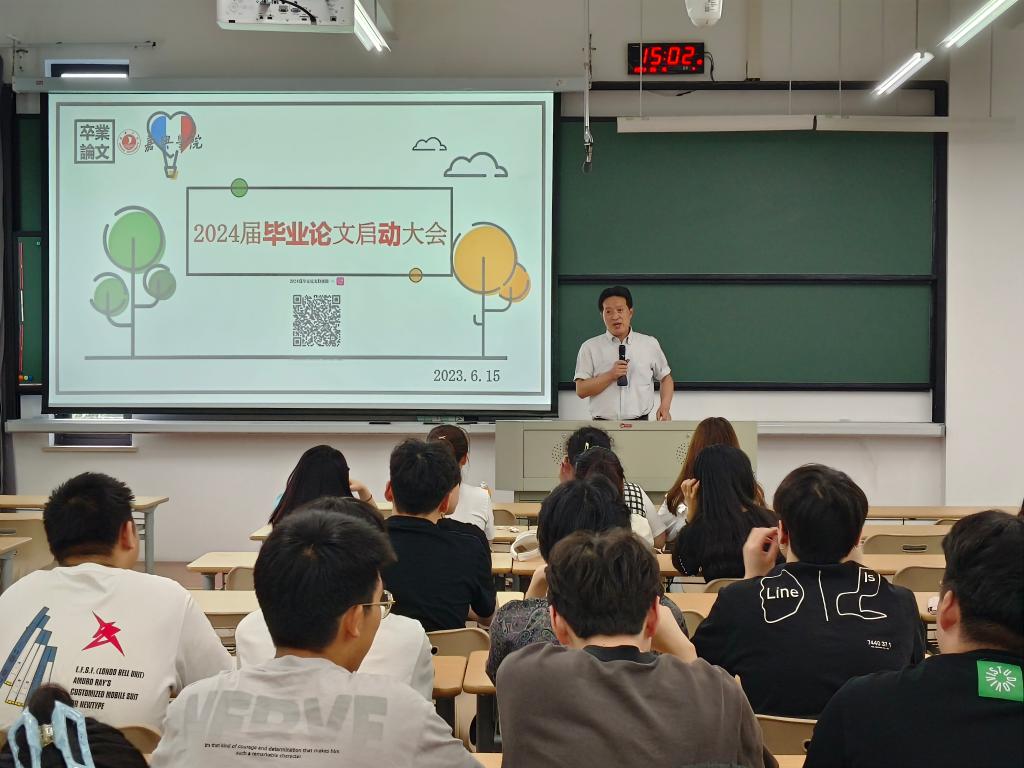 6月15日下午,外语学院日语专业在兴德楼205教室启动了2024届本科毕业论文工作,2024届日语专业所有学生和全体论文指导教师参加了启动仪式。启动仪式由日语教研室主任王雪老师主持,日语专业负责人郭永恩老师作了动员讲话。