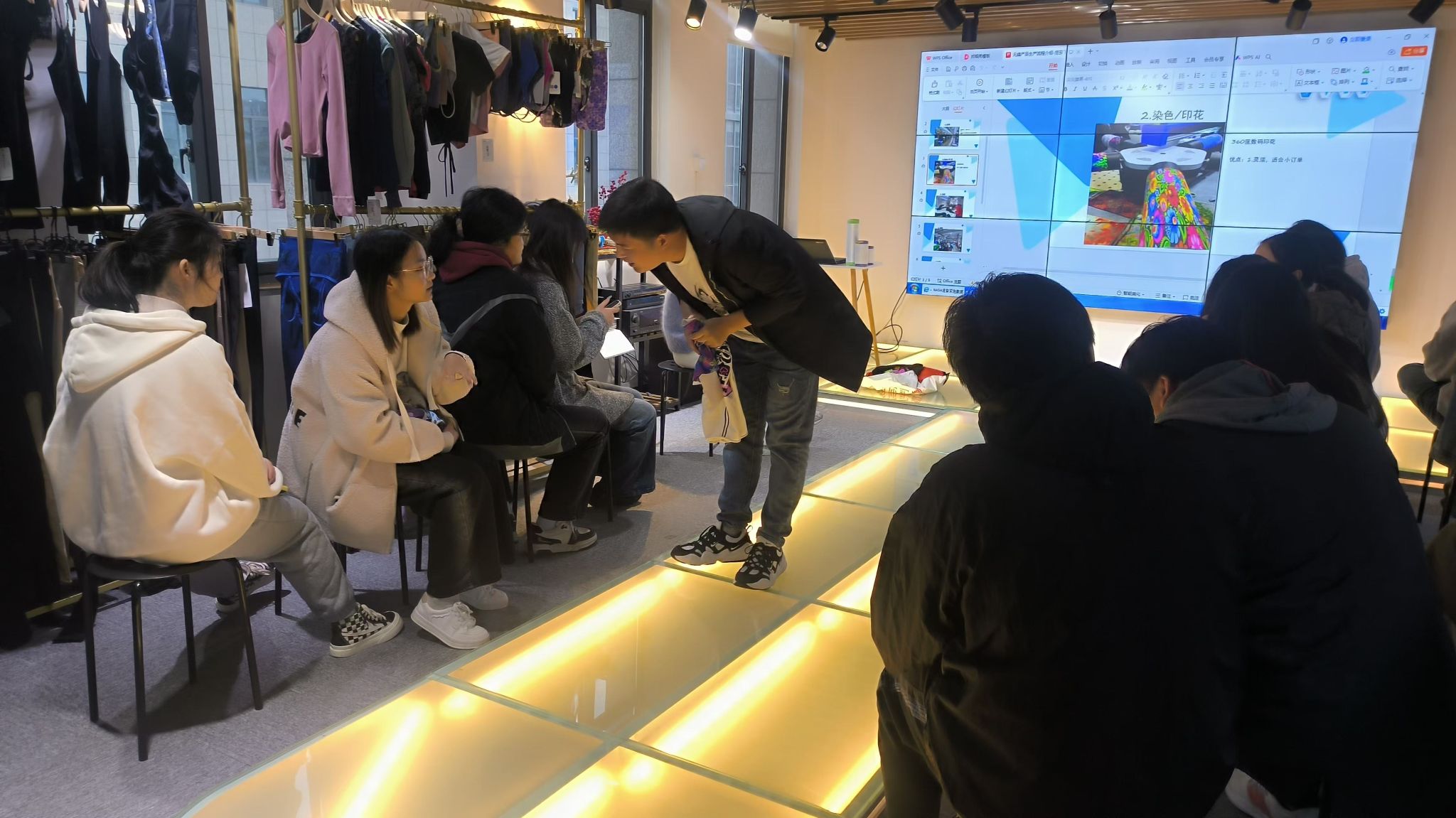 参观结束后,企业方与学生们进行了座谈交流。相关负责人向学生们介绍了服装外贸行业的现状与发展趋势,并结合自身经历分享了职业规划的建议。他们鼓励学生们提升专业技能的同时,也注重培养跨文化沟通能力和行业敏感度。学生们在现场踊跃提问,就未来就业选择及行业要求与高管进行了深入探讨。