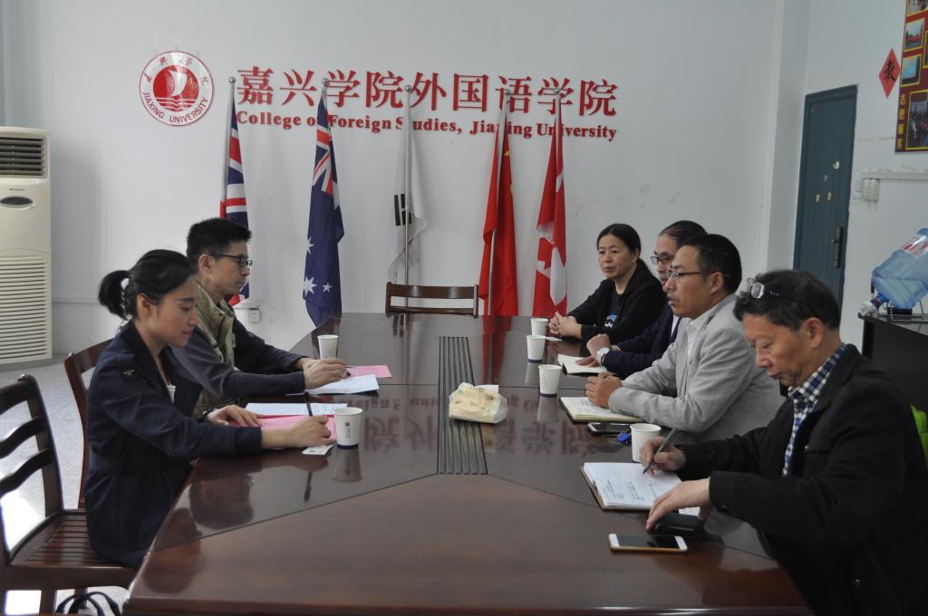2018年10月19日,上海上海邦德职业技术学院国际教育学院杨自力院长一行来我院交流。外国语学院喻锋平副院长、英语系杨泓主任和社会服务与培训中心刘少萍主任参加了此次座谈会。
