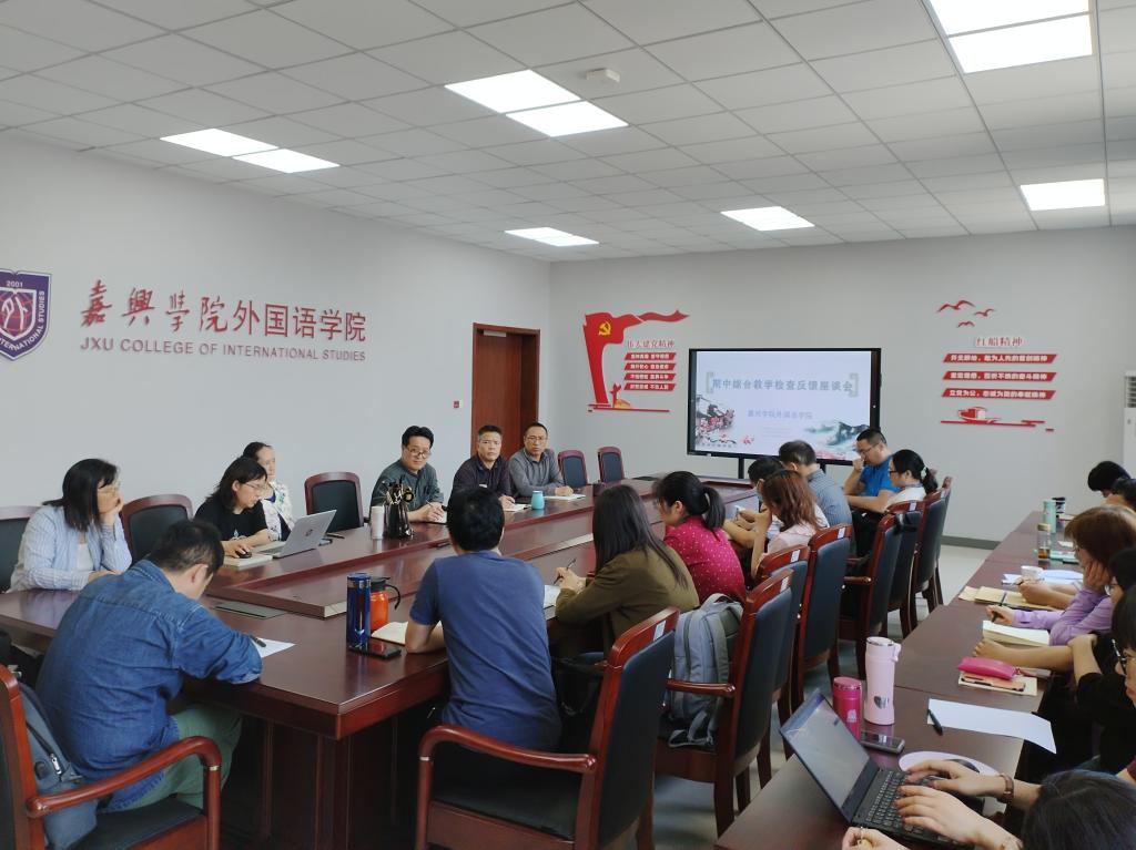 为提高教学质量,确保教学管理各个环节顺利运行,5月4日下午外国语学院在兴德楼南楼516室召开2022-2023-2期中教学检查教师座谈会及公开课集中反馈交流会。学院领导代表唐艳芳、郭永恩、喻锋平,院督导代表罗国华、蒋宇红及教师代表20余名参加了本次会议。
