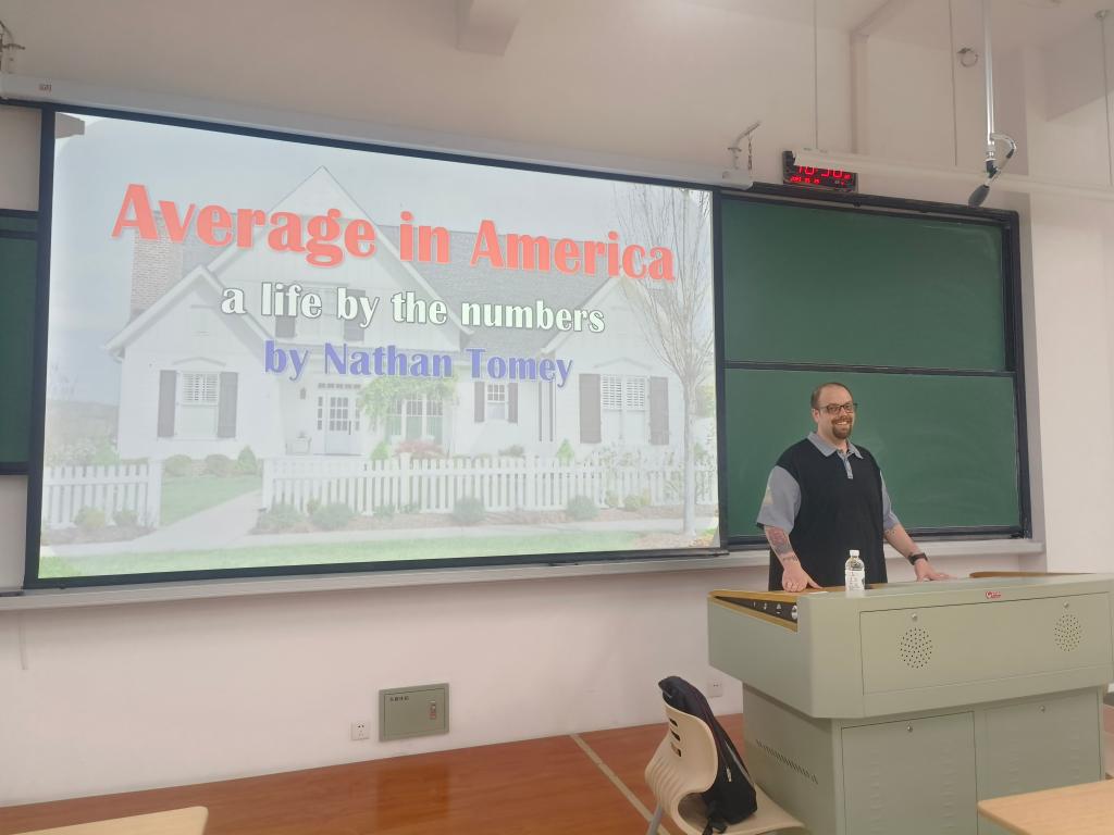 最后,在结束了“Average in America”的主题分享后,Nathan邀请大家提问,鼓励学生用英语讲述自己对美国的看法,并与学生进行亲切的交流互动,不少同学通过交流解开了内心的困惑。