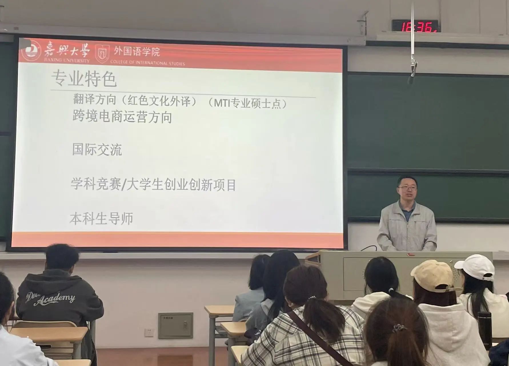 活动伊始,潘宁宇从师资力量、国际交流、学科竞赛、科研创新项目、本科生导师制等多个方面向大一新生们介绍专业特色,帮助大家了解英语系的总体情况,以便在今后专业学习中更好有的放矢。