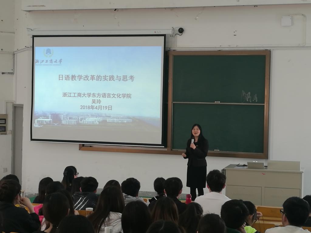 时值我校专业审核性评估进入关键阶段,4月19日下午,浙江工商大学东方语言文化学院副院长兼浙皖赣日语教学研究会秘书长吴玲教授莅临我院,就我院日语专业建设与日语专业教师进行了交流,还为师生们做了“日语教学改革的实践与思考”的讲座。