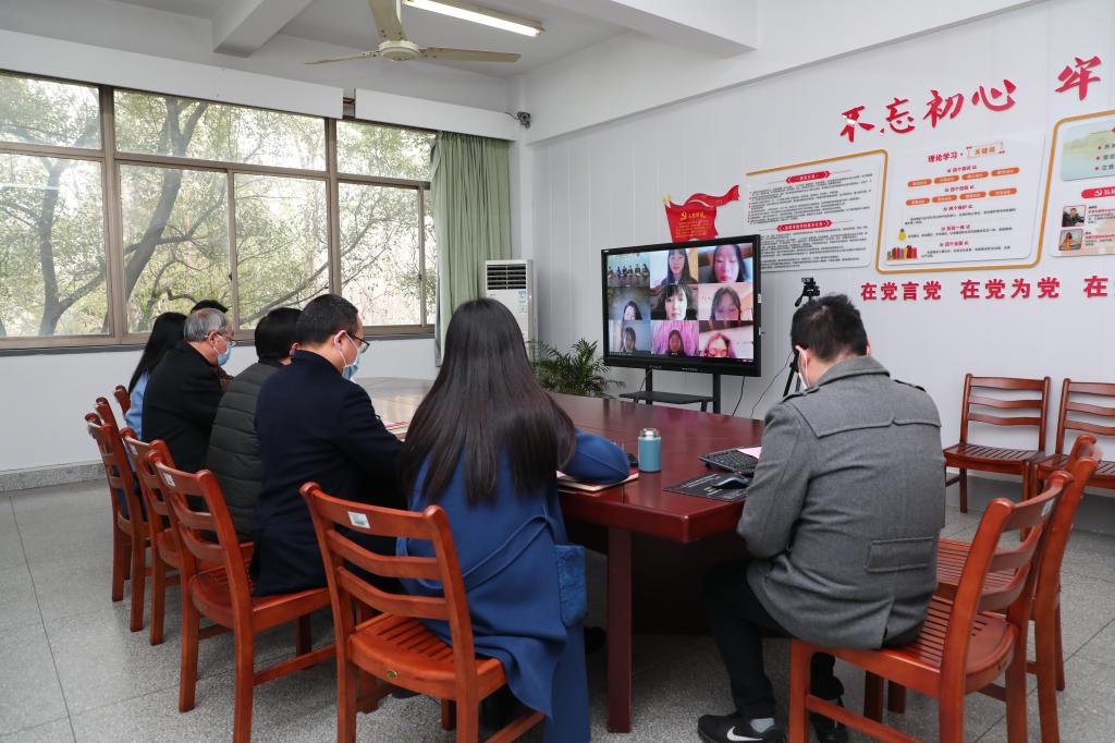 “自疫情发生以来,学校学院老师们很关心你们。”“无论有什么困难,多跟老师们沟通,会尽力帮大家解决!”“等春暖花开,我们嘉院相聚!”……3月11日下午3点45分,一场特殊的网上视频交流会在外国语学院204会议室举行,副校长费建文、外国语学院党政领导班子通过网络视频连线,向身在湖北的13名外院学子及其家人送去关心和慰问。院党委副书记周钰主持会议。