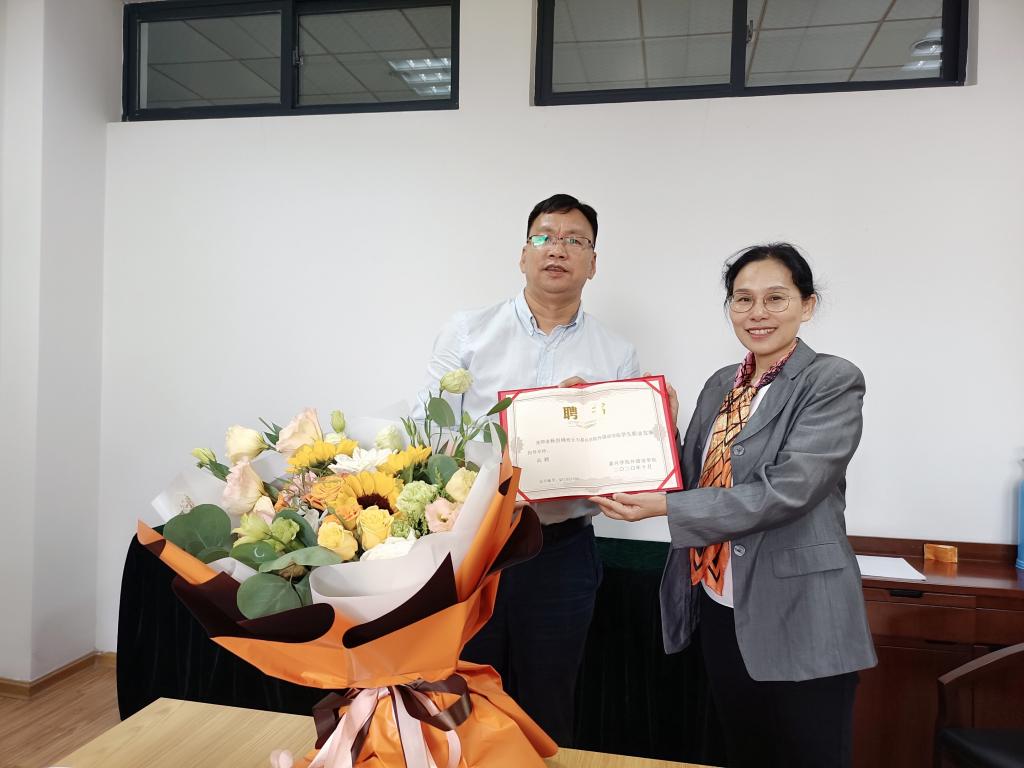 会谈中,陶丹玉书记真诚地表达了母校的问候和关怀,向杨剑峰校长颁发了乐鱼手机入口学生职业发展指导导师的聘书,并盛情邀请杨校长在10月校庆期间回母校参加校庆纪念活动。陶书记介绍了外国语学院英语和日语两大专业的毕业生的就业情况,请杨剑峰校长从企业用人的角度对商务英语和日语方向的学生的学业规划和就业前景提出了宝贵的建议。喻院长和郭院长也与杨剑峰校友进行了深入的交流,分享了我院近几年在人才培养模式、招生就业工作以及服务社会等方面取得的成绩以及在助力学校申硕创大方面所做的工作。一行人还深入交流了我院近几年学生的考研率和留禾率,目前尚存在的问题,以及大一新生职业规划教育的迫切性。