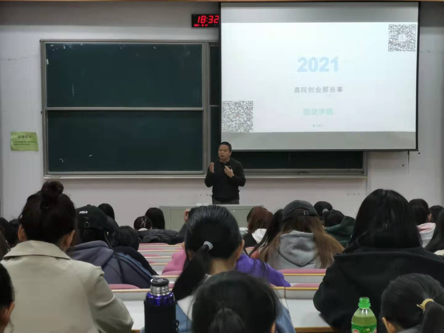 为帮助新生尽早做好大学生涯规划,增强对创新创业内涵的理解,指导学生创业思维方向,10月21日晚,外国语学院创新创业教育讲座在悦礼楼报告厅举行。学院邀请了创业学院顾小军老师为全体2021级新生作了题为“2021嘉院创业那些事”的专题讲座。