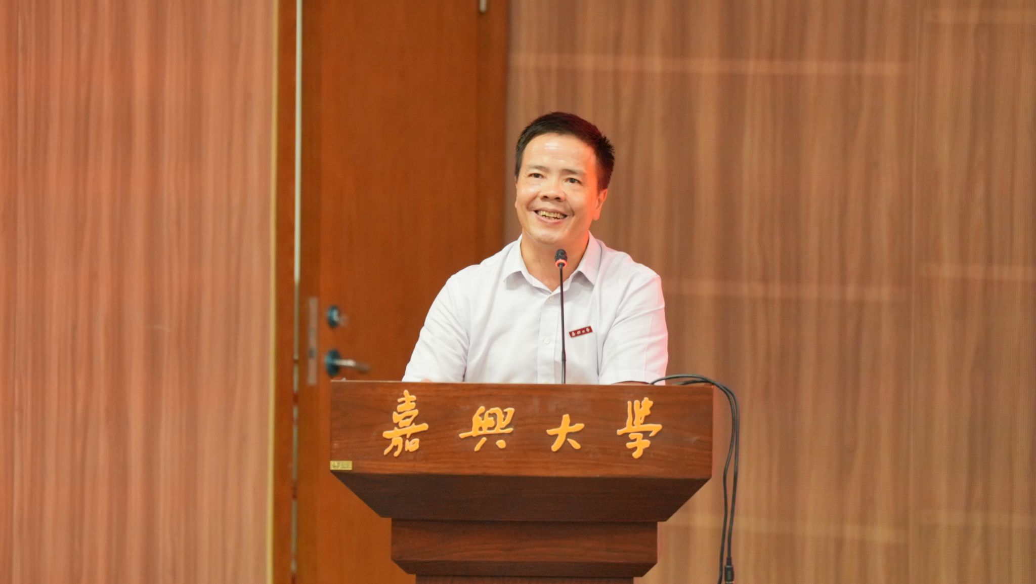嘉兴大学第一届“我心目中的好老师”、英语243班班主任鲁俊丰作为教师代表发言,他希望在未来的学习道路上,同学们能心怀“理解世界,传播中国的理念,以开放的心态深入地探索世界文化的多样性”,讲好中国故事,传播好中国声音,为推动中华文化交流和中化文化“走出去”贡献自己的青春力量。