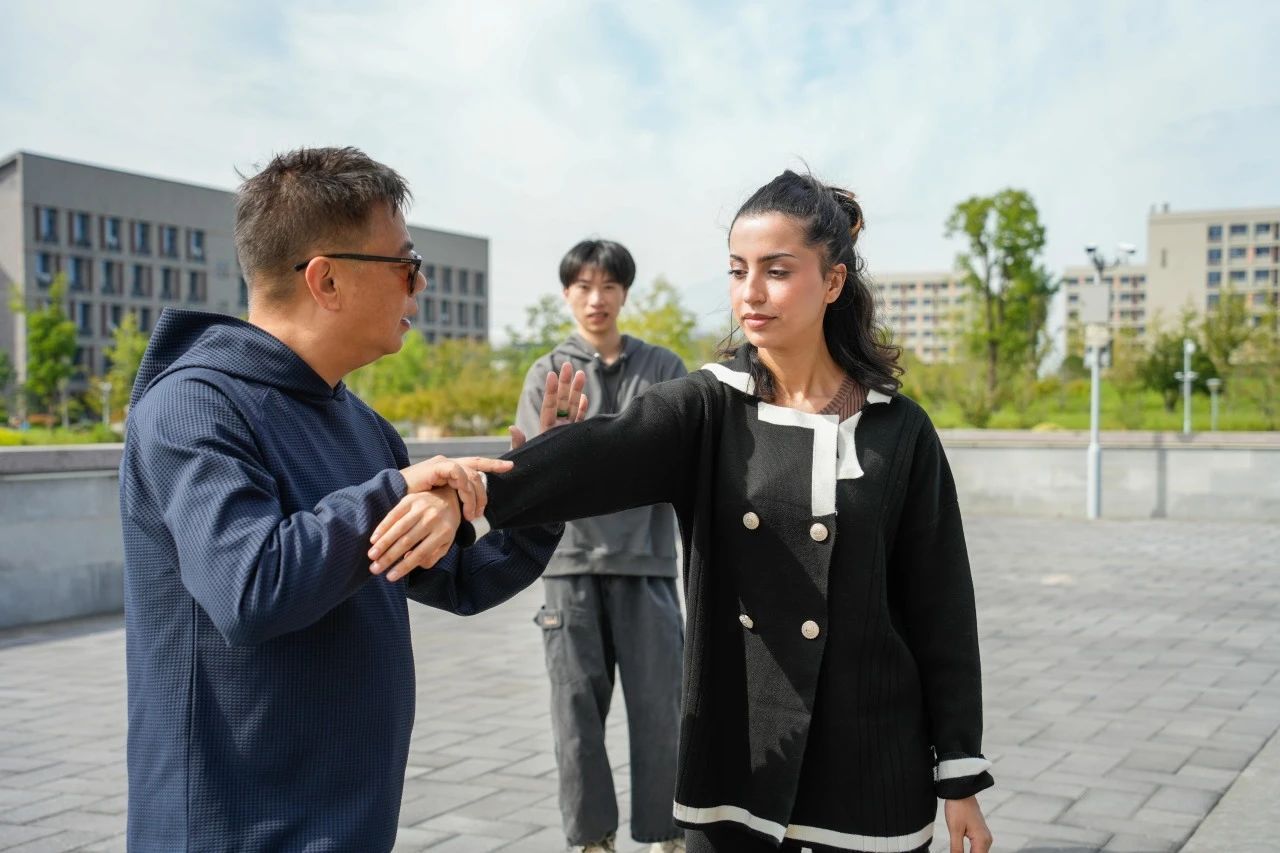 应外国语学院副院长邱佳邀请,本次活动邀请到陈式太极非遗传承人彭耀中老师为大家授拳。来自摩洛哥、阿尔及利亚、尼泊尔等国的多位留学生与他们的中国同窗一起参与了本次活动。