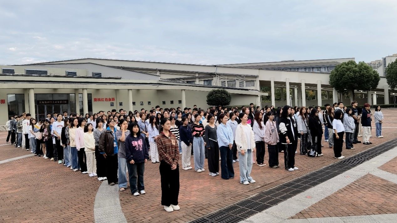 10月14日清晨,外国语学院在梁林校区学生活动中心广场举行本学期首次升旗仪式。全体2024级新生参加了活动。