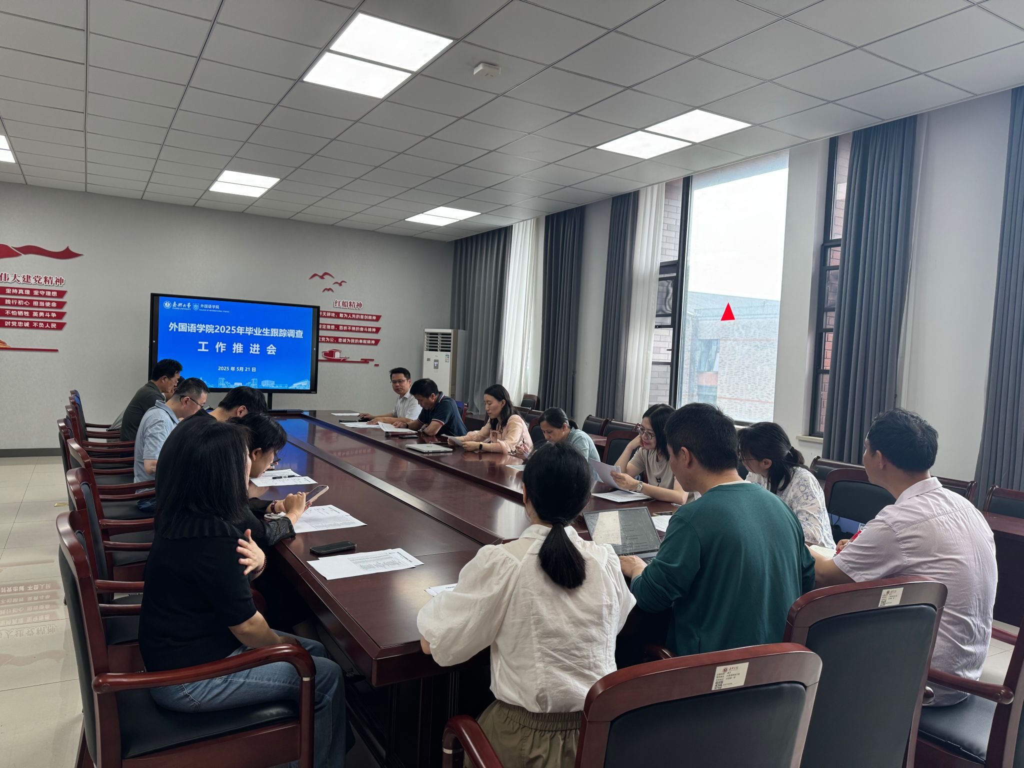 5月21日,外国语学院在兴德楼南楼516召开2025年毕业生跟踪调查工作推进会。学院党政领导、系主任、2020届和2024届班主任、辅导员参加会议。会议由党委副书记张啸峰主持。