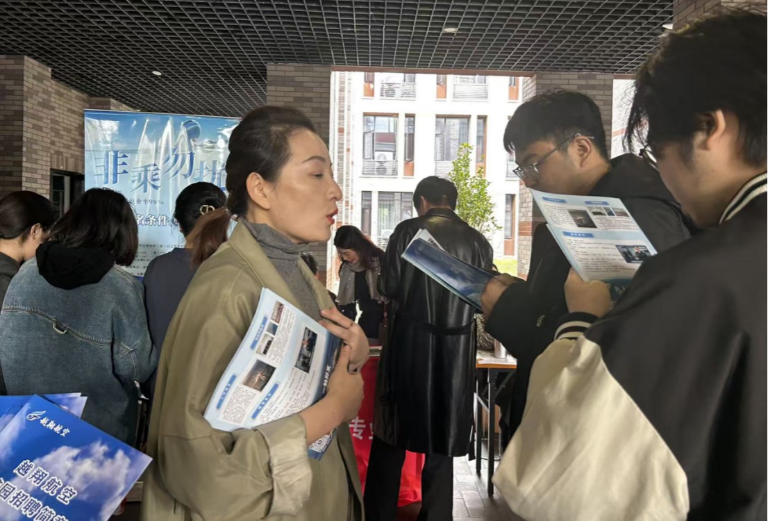 10月23日下午,外国语学院携手经济学院在梁林校区铭德楼一楼联合举办“就”在金秋,“职”击现场——2026届毕业生秋季联合招聘会。