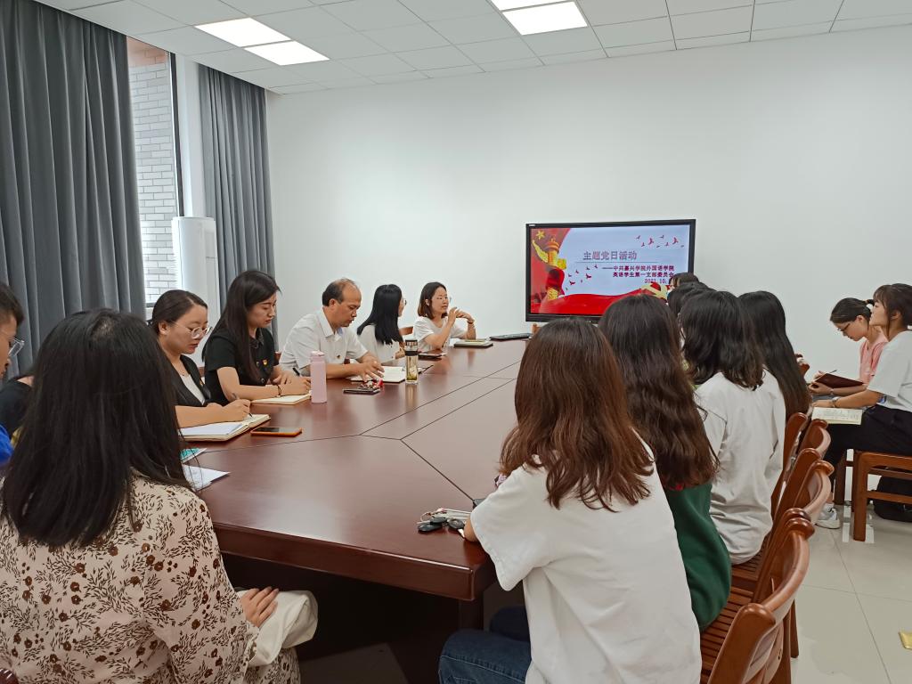 为扎实推进党史学习教育,进一步提升学生党员的党性修养,引导学生党员担负起时代赋予的责任和使命,外国语学院英语学生第一党支部于10月14日下午在兴德楼513开展了主题党日活动。校党委委员、副校长杨培强,学院党委书记周钰、副书记朱莹及支部全体党员同志出席了本次活动。本次活动由支部书记胡笳丽主持。