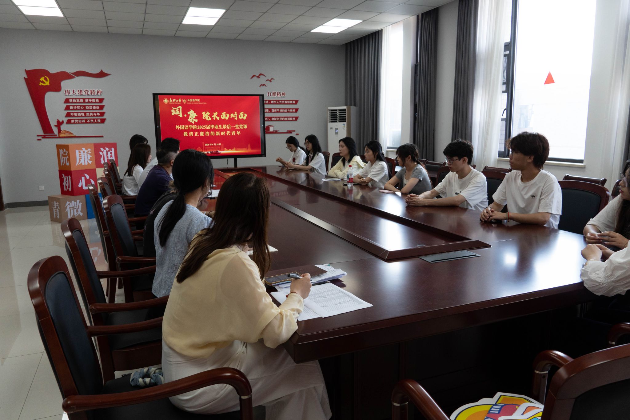据悉,外国语学院高度重视毕业生廉洁从业教育,为毕业生党员上廉洁教育专题党课是面向青年学生开展全过程廉洁教育的重要一环,已经持续开展了多年,是学院建设“廉润初心”廉洁文化品牌的有效载体,是学院毕业季活动以及清廉文化月活动的重要组成部分,旨在引导毕业生党员在人生新起点上坚定理想信念,坚守廉洁底线,以清正廉洁擦亮青春底色,以实干担当成就精彩人生,为强国建设贡献青春力量。
