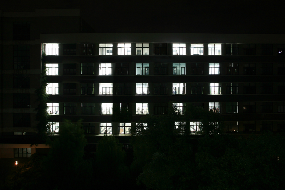 20:30教二A全部教室熄灯,而后,部分教室按约定陆续亮灯,20:35,外国语学院的亮灯“100”正式成型。亮灯“100”造型前后共持续15分钟,吸引了很多同学驻足观看和拍照。