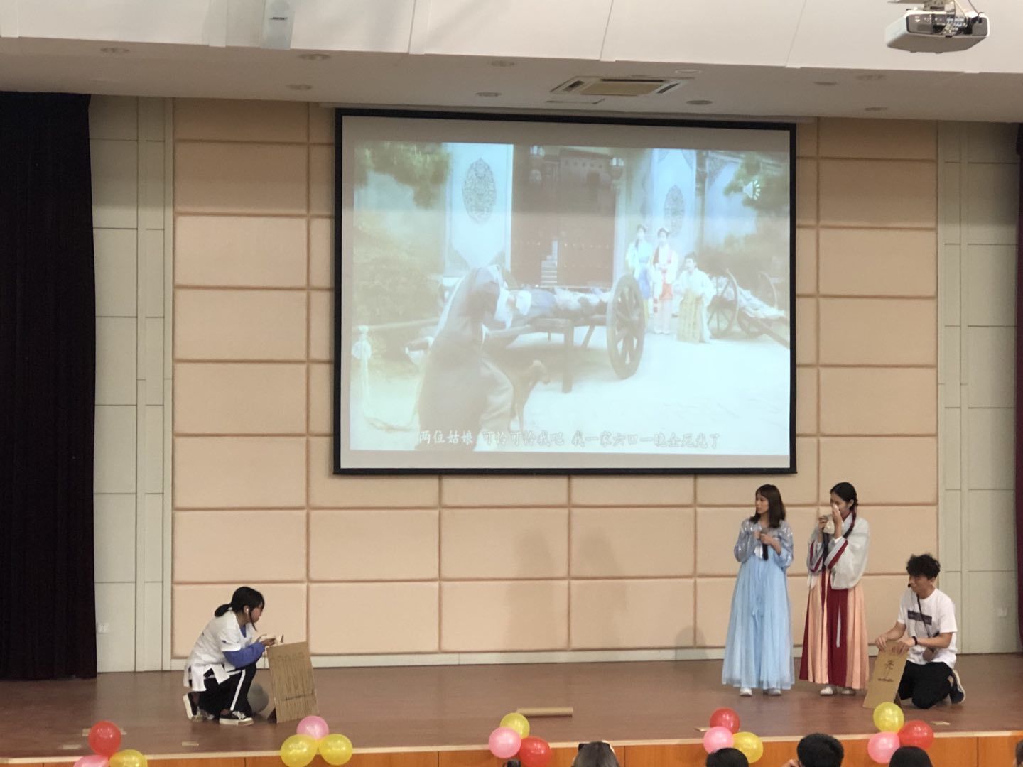 施国豪、杨芳琴、沈蕙敏、单钰婷小组的《唐伯虎点秋香》改编自周星驰的同名电影,他们熟练自如的日语表达征服了评委,幽默诙谐的表演使现场观众笑声不断,最终他们将一等奖收入囊中。