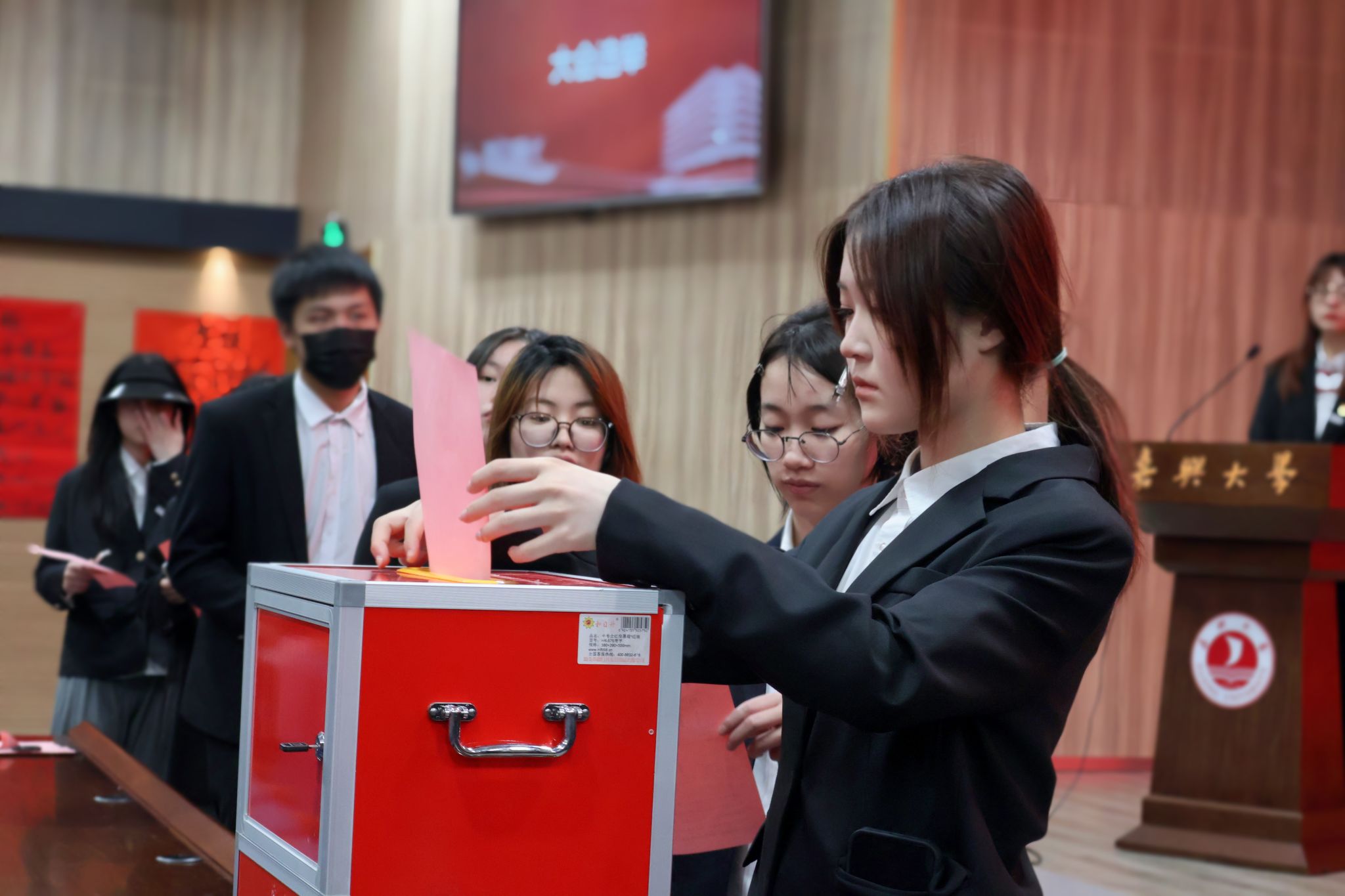 各代表团围绕领导讲话和大会报告展开深入讨论,认真审议了大会选举办法、委员候选人建议名单等有关事项。大会选举产生了9位共青团嘉兴大学外国语学院第一届委员会委员、11位嘉兴大学外国语学院第一届学生委员会委员以及3位第一届学生会主席团成员。