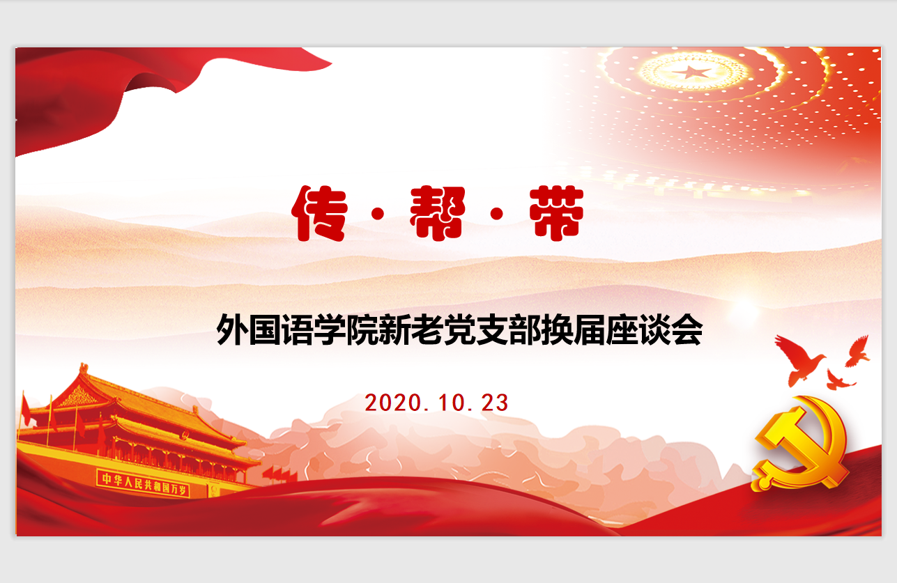 日前,根据新修订的《中国共产党基层组织选举工作条例》要求,在外国语学院党委的统一部署和周密安排下,各基层党支部经过充分酝酿和准备,按照规定的基层组织选举办法,顺利完成了新一届换届选举工作。为了更好地发挥“传帮带”作用,顺利推进新老交接,加强基层党支部队伍建设,提高基层党支部工作质量水平,10月23日下午外国语学院在204会议室召开基层党支部换届座谈会。会议由学院党委书记陶丹玉主持,院长唐艳芳、副书记周钰以及新老支部委员会全体成员参加会议。