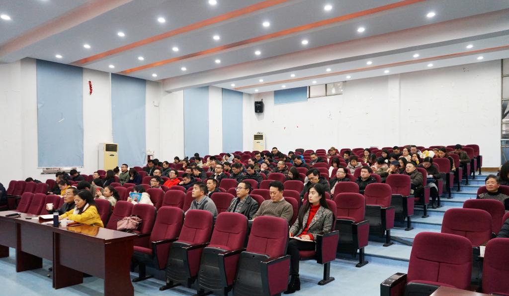 为深入学习宣传贯彻党的十九届四中全会精神,进一步深化“不忘初心、牢记使命”主题教育,12月26日,校党委十九届四中全会宣讲团成员、副校长费建文为外国语学院和机电工程学院全体教职工作党的十九届四中全会精神宣讲报告。报告会由外国语学院党委书记陶丹玉主持。