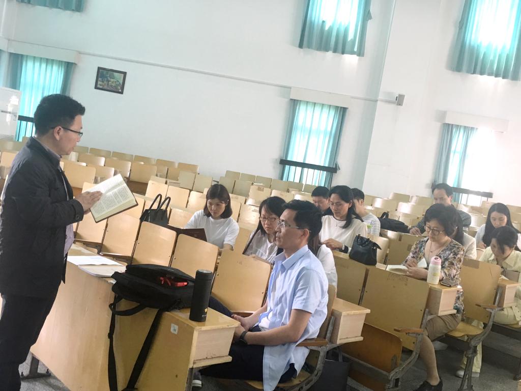 最后,外国语学院党委书记陶丹玉同志指出,要增强党员的身份意识,除了要记住自己的教师身份还应该记住自己的党员身份,党员工作的开展更应该结合系部工作进行。同时陶书记也传达了北京学习的精神,分析了当前的形势,并强调了全面从严治党的重要性,还指出党支部、党小组的建设应该时刻谨记党员身份,重视党的民主评议和先锋堡垒作用,同时突出服务型党组织的建设。
