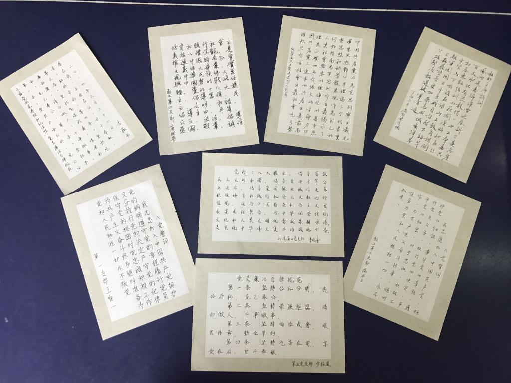 英语教工支部为了组织好此次活动,从前期酝酿,到过程实施和后期评奖,都做了精心设计和安排。在书法写作内容上,鲁俊丰和杨雪梅两位支部书记专门为五个支部分别设计了入党誓词、党章、社会主义核心价值观、廉政纪律准则以及爱国诗词等五个主题内容。党员们通过一次次练习书写,重温入党初心,牢记纪律准则,强化党员意识,抒发爱国热情,铭记作为一名共产党员的职责与荣誉。本次大赛党员教师参与热情高,参与率超过90%,活动激发了全体党员为人民服务的热情,有效增强了外国语学院党组织的凝聚力。