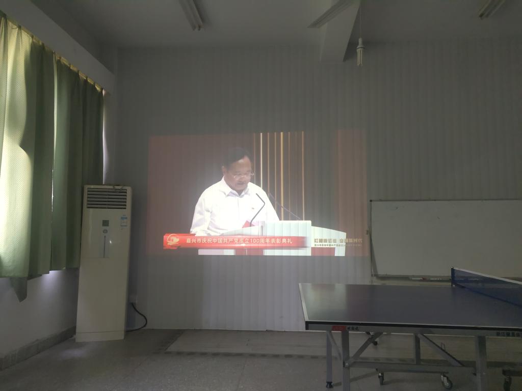 6月24日下午,外国语学院教工第一支部组织全体党员集中收看嘉兴市庆祝中国共产党成立100周年表彰典礼现场直播。表彰典礼通过视频、歌舞、朗诵等形式,生动展现先进人物的典型事迹,庆祝党的百年华诞,回顾党的百年历程,讴歌党的百年伟业,表彰先进集体和个人,激励全市党员干部群众大力弘扬红船精神,不忘初心、牢记使命,满怀豪情奋进社会主义现代化建设新征程。嘉兴市委书记张兵出席典礼并讲话。