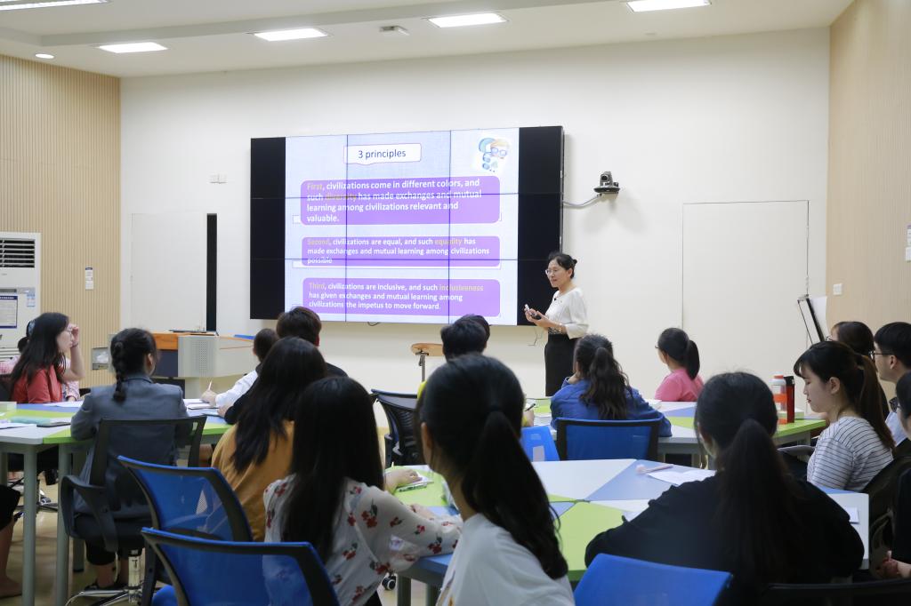 外国语学院第二党支部共有党员15名,其中教授2名,博士7名,学科带头人1名。该支部是学院“双带头人”支部书记重点培养支部。党支部自成立以来,努力探索形成党建和业务“双融双促”工作机制,有效建设“党建+”工作模式,着力打造“红色文化外译”党建品牌。支部党员教师专注于外语课程思政教学模式创新,将伟大建党精神、红船精神等思政元素融入笔译实践,形成具有鲜明校本特色的翻译课程思政教学创新模式。支部党员利用嘉兴红色文化资源开展教学和研究实践工作,实现了提高译者翻译能力、厚植家国情怀、培养学生成长成才的育人目标。