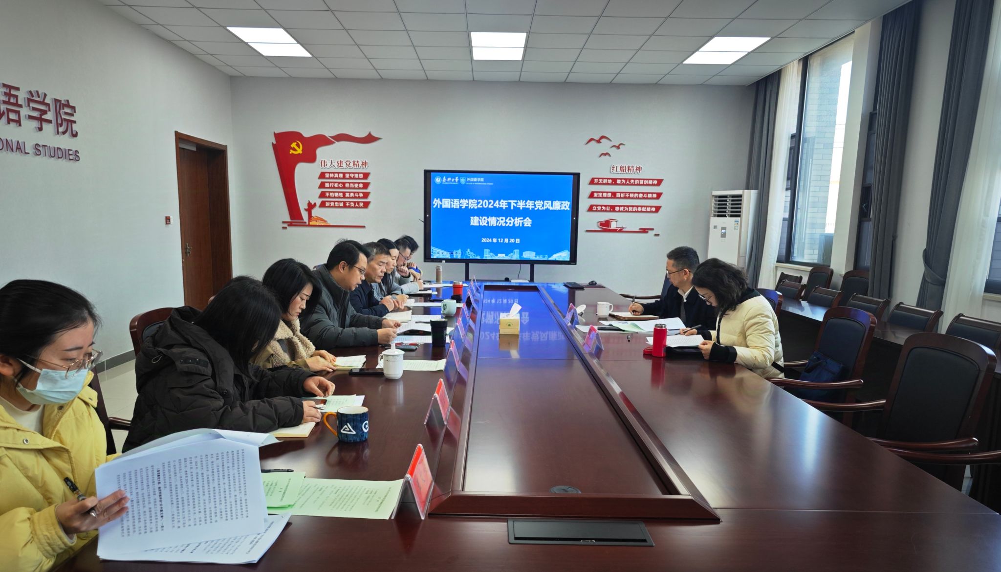 12月20日上午,外国语学院在兴德楼南楼516会议室召开2024年下半年党风廉政建设情况分析会。校党委委员、纪委书记、省监委驻嘉兴大学监察专员陈新友到会指导,纪检监察室(巡察办)副主任杨碧瑜、学院党政领导班子成员、党委委员、特邀监察员等参加会议。会议由学院党委副书记张啸峰主持。