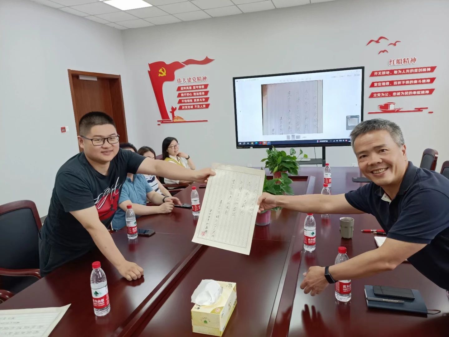周钰代表学院对三位老师在各自的工作岗位上为学院的建设和发展所做出的贡献致以诚挚的谢意。周红、赵益新、孔少杰老师三位老师对学院领导和同事一直以来的关心和支持表示感谢,深情地回顾了在学校工作的奋斗历程,一致表示,今后将一如既往地关注和支持学院的建设和发展,希望学院的明天更加美好。在座的教师代逐一回忆了与三位老师相处的点点滴滴,为他们爱岗敬业、认真踏实的工作态度而感动,并给他们送上了美好的祝福。随后,学院领导代表学院向三位老师献上鲜花。唐艳芳院长和郭永恩副院长即兴作诗,为他们送上最诚挚的祝福。