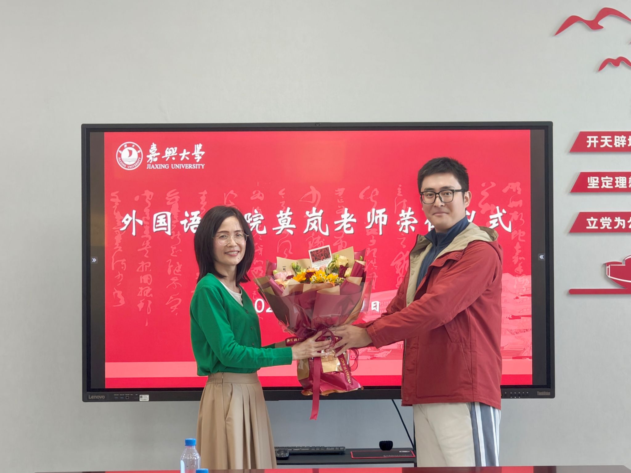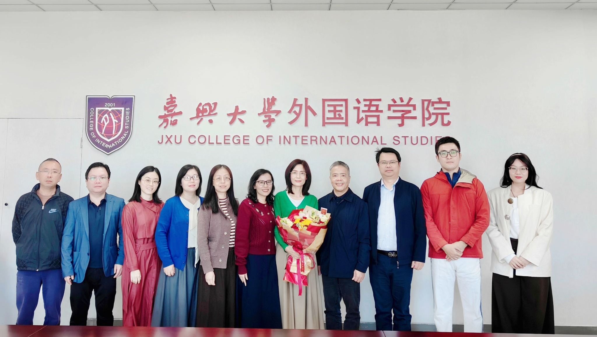 最后,唐艳芳院长即兴赋诗一首《贺荣休》:“莫道桑榆晚,岚光映宇轩。珍情恒久远,重意启新帆”,为莫岚老师送上最诚挚的祝福。他在讲话中指出,莫岚老师勤勤恳恳、默默奉献的精神,值得每一位外国语学院师生学习。这种人文精神的传承,必将为学院的高质量发展注入强大的精神动力。他希望莫岚老师继续关注学院的发展,常回“嘉”看看。