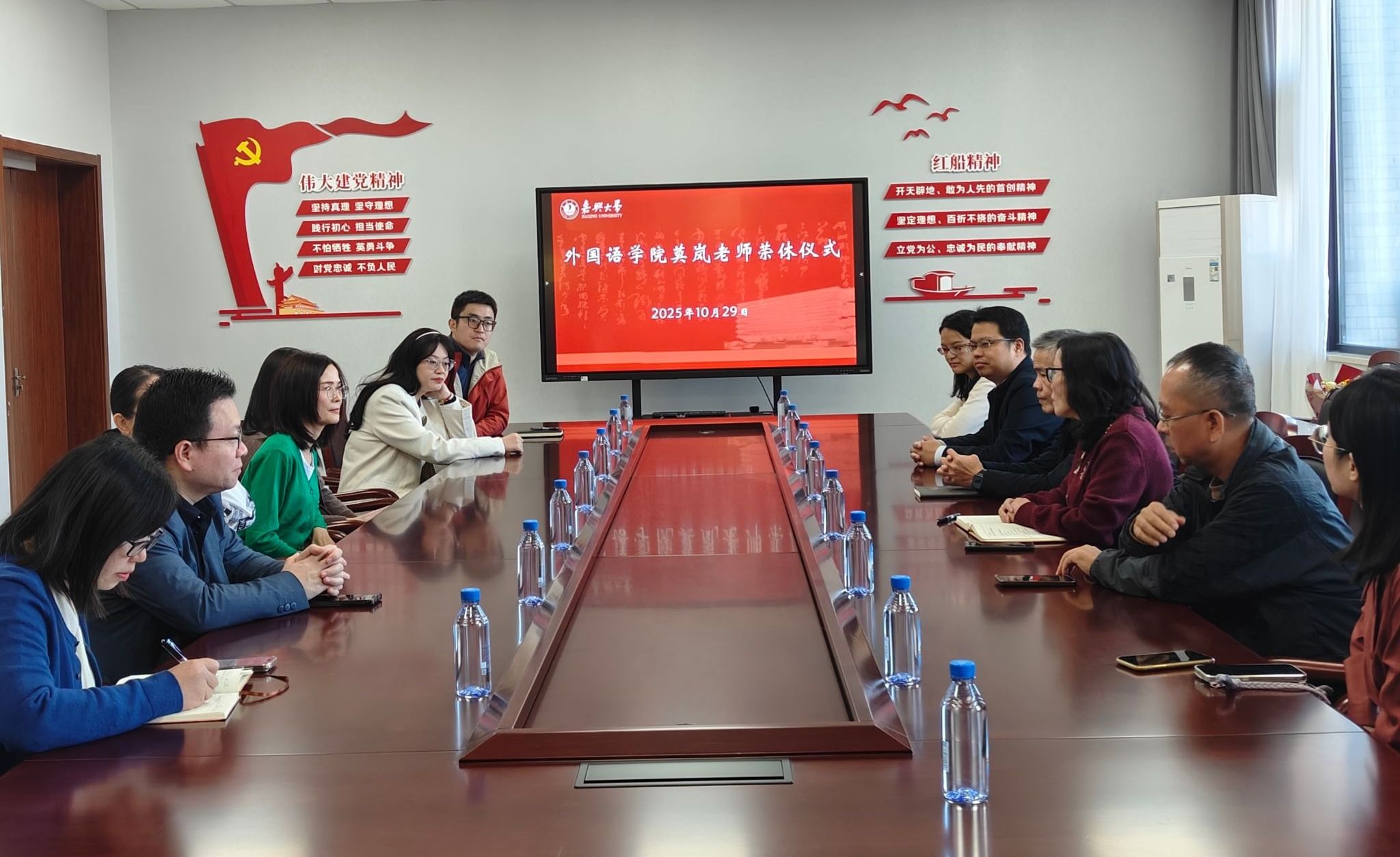 10月29日,外国语学院在兴德南楼516会议室为莫岚老师举行荣休仪式。学院领导班子成员与教职工代表齐聚一堂,共同回顾莫岚老师近二十年的职业历程,感念其敬业奉献与温暖关怀,并为其未来的退休生活送上诚挚祝福。仪式由学院党委书记刘巧芝主持。