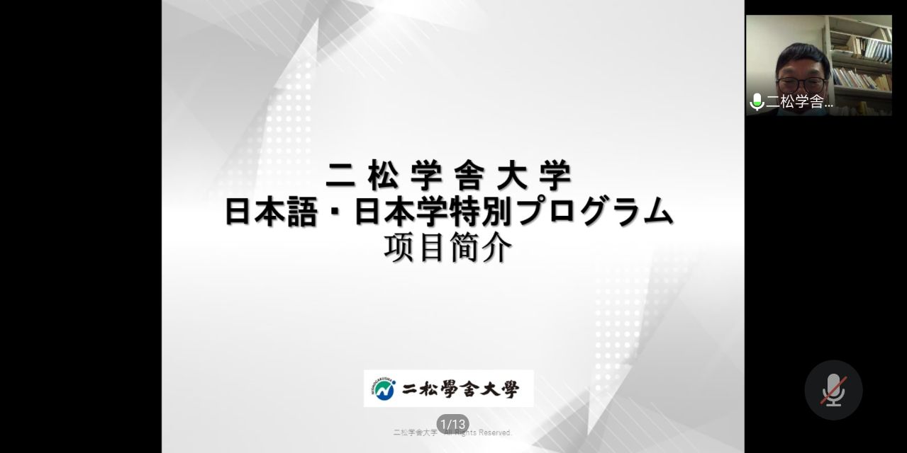 2020年11月5日下午,外国语学院举行了2021年度日本二松学舍大学留学线上宣讲会,说明会由日语系刘韵超主任主持,二松学舍大学教授兼国际交流中心主任王宝平老师以及木谷阳子女士参加了说明会。