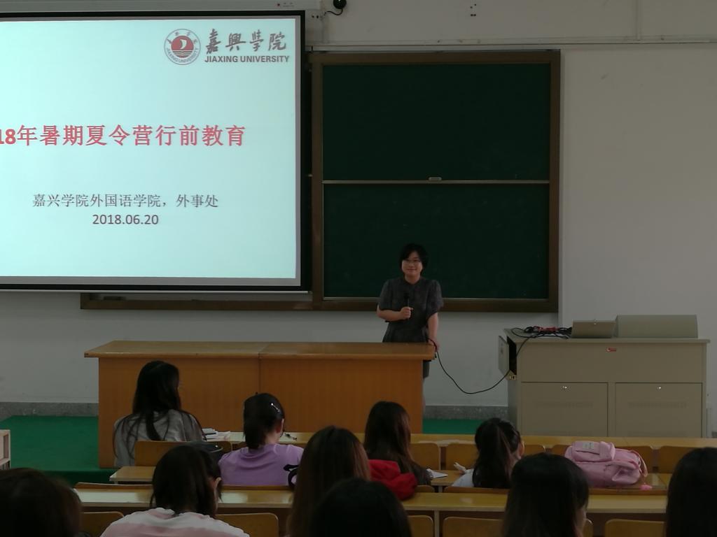 嘉兴学院暑期赴日夏令营活动,迄今举办了两次,共74名学生参加,今年是第三次,有来自外国语学院、南湖学院人文系日语教研室、平湖校区应用技术学院日语系以及其他学院各专业的学生共39名同学参加。鉴于此,为了保证此次活动顺利实施,举办行前教育十分必要。一个月后,39名同学将赴日实习一个月,我们真诚希望嘉兴学院第三次暑期赴日本东京夏令营活动的同学们收获满满,安全归来。