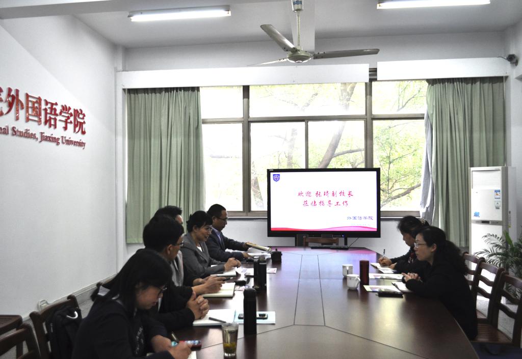 11月5日下午,嘉兴学院副校长张琦、教务处副处长张彩云来外国语学院调研指导工作。外国语学院党政领导、系(部)主任、教研室主任和教务办主任参加座谈会,会议由党委书记陶丹玉主持。