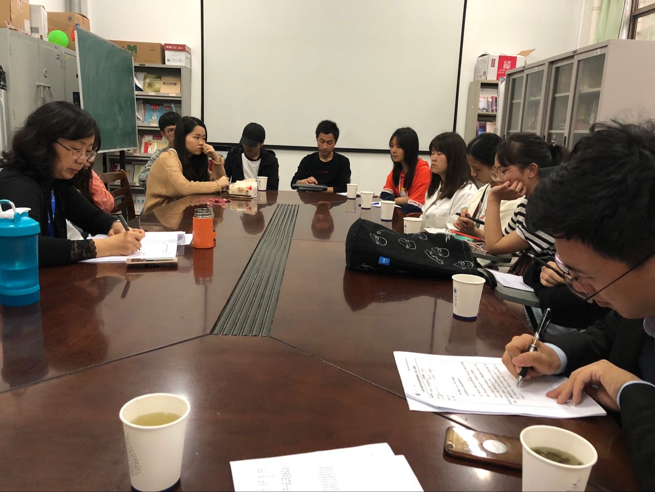 4月23日下午,此次本科专业审核评估预评估工作的学生座谈会在外语楼101会议室召开。浙江师范大学外国语学院院长洪明教授与来自嘉兴学院文法学院和外国语学院的二十余位同学就学生的职业规划、人才培养方案的课程设置等问题进行深入交流。会议中,同学们对专业的课程体系构成、实践实习的组织等内容表示满意,同时也希望学院在个性化培养方案的设置、课程的选择方面能进一步丰富和完善,更进一步地满足学生职业规划和成长成才的需求。