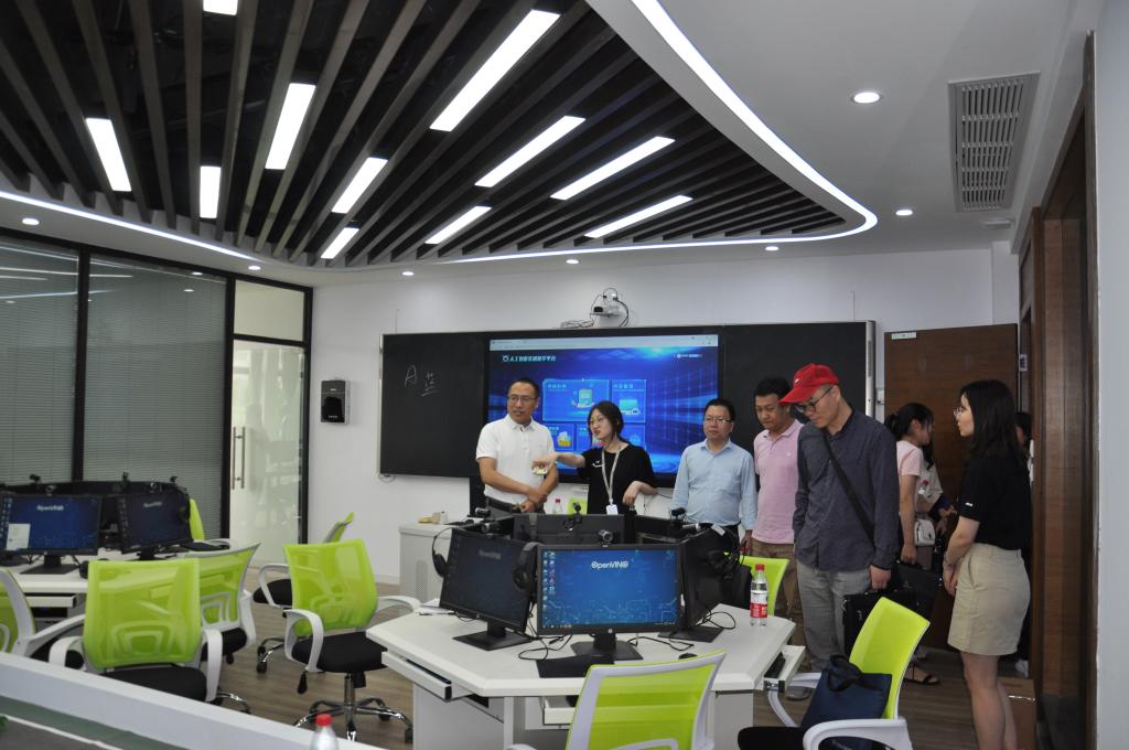 6月4日下午,外国语学院一行14名教师在副院长喻锋平带领下前往蓝鸽集团科技公司参观考察,大外部主任、日语系主任、英语系主任和实验室主任全程参与,深入了解蓝鸽集团AI一体化智慧校园解决方案。