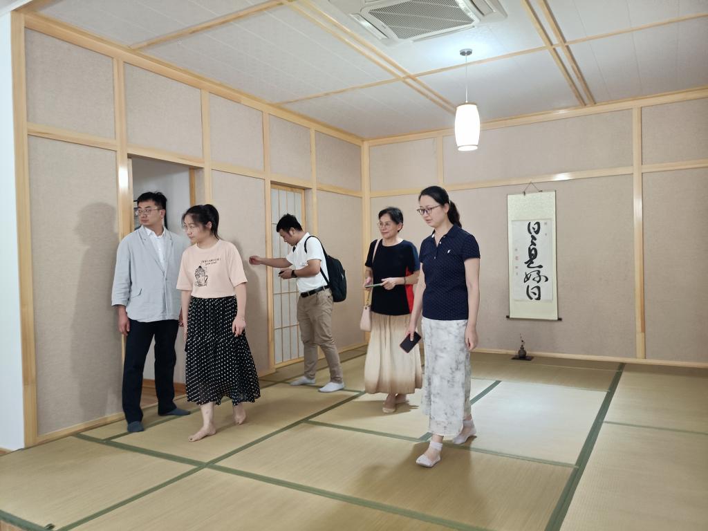 座谈后,董科副院长、陈红主任和刘潇雅副主任陪同一行参观了日本国际交流基金会杭州“心连心”中日友好之窗基地与日本文化体验中心,并详细介绍了学校对于文化楼宇和文化体验中心建设给予了经费、装修等方面的大力支持,同时就文化体验中心的管理和利用等也做了细致的说明。据此得知,日本文化体验中心不仅供日语专业用于实训课程授课,还面向于全校学生社团开放使用,特别还面向开设有日语课程的杭州高中开放,承载着校内实训课和校外社会服务的功能,最大限度地保证了文化体验中心的利用率,也因此受到校内外一致的好评。