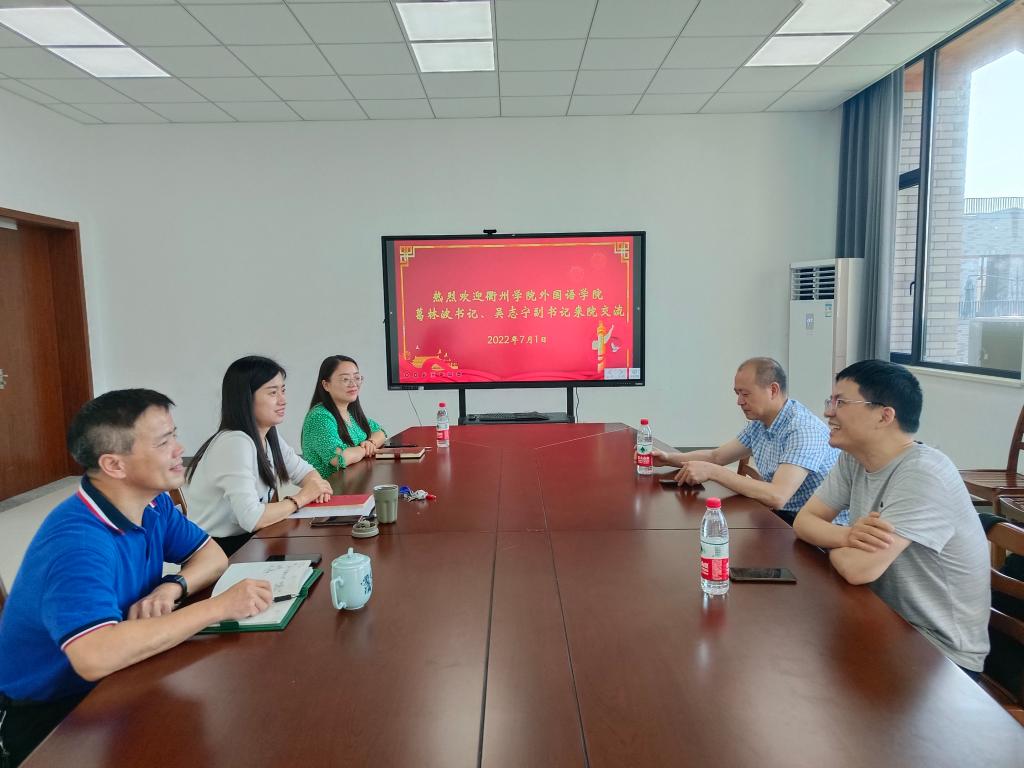 葛林波介绍了衢州学院外国语学院的基本情况。双方还围绕硕士点建设、人才引进等进行了深入交流,表示将继续开展合作交流,实现优势互补、拓展合作渠道,开启共同发展新征程。