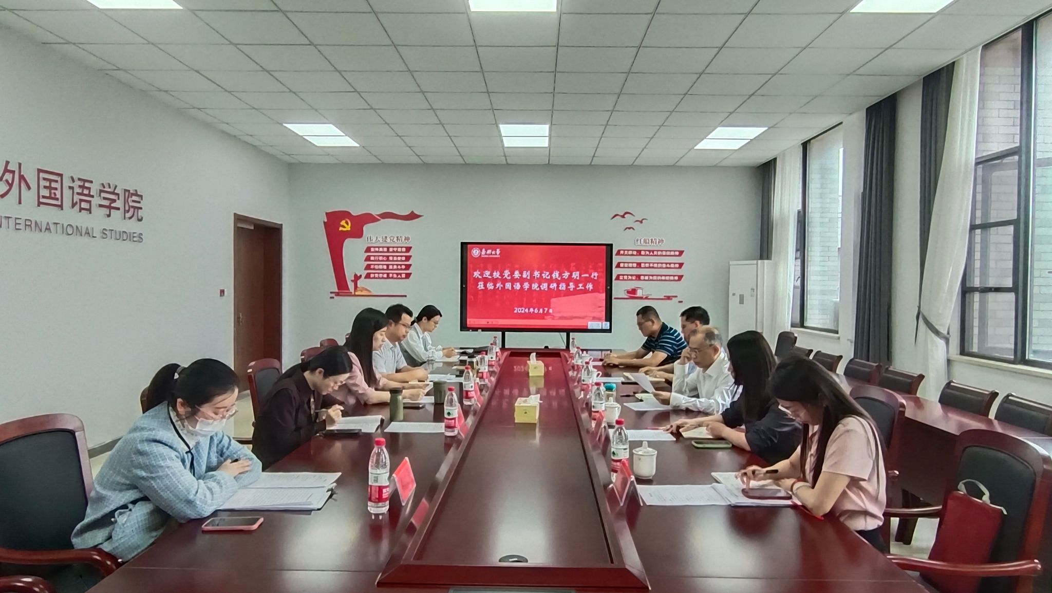 6月7日,校党委副书记钱方明率队到外国语学院调研指导工作。