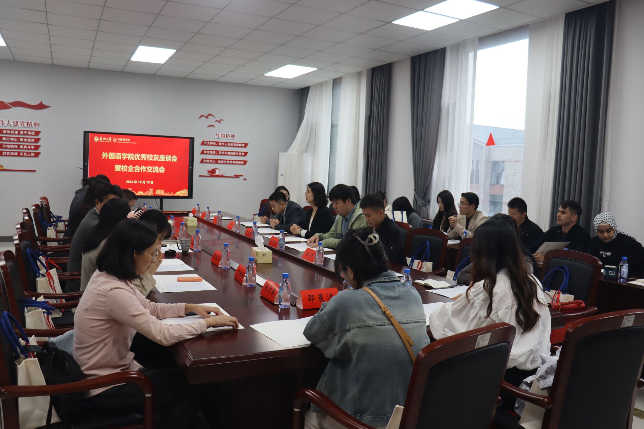 10月19日,在庆祝嘉兴大学办学110周年之际,外国语学院在兴德楼南楼516会议室举行校友座谈会暨校企合作交流会。优秀校友和企业代表齐聚一堂,分享人生经验,共话美好未来。学院党政领导和部分教师代表参加座谈会,会议由党委书记周钰主持。