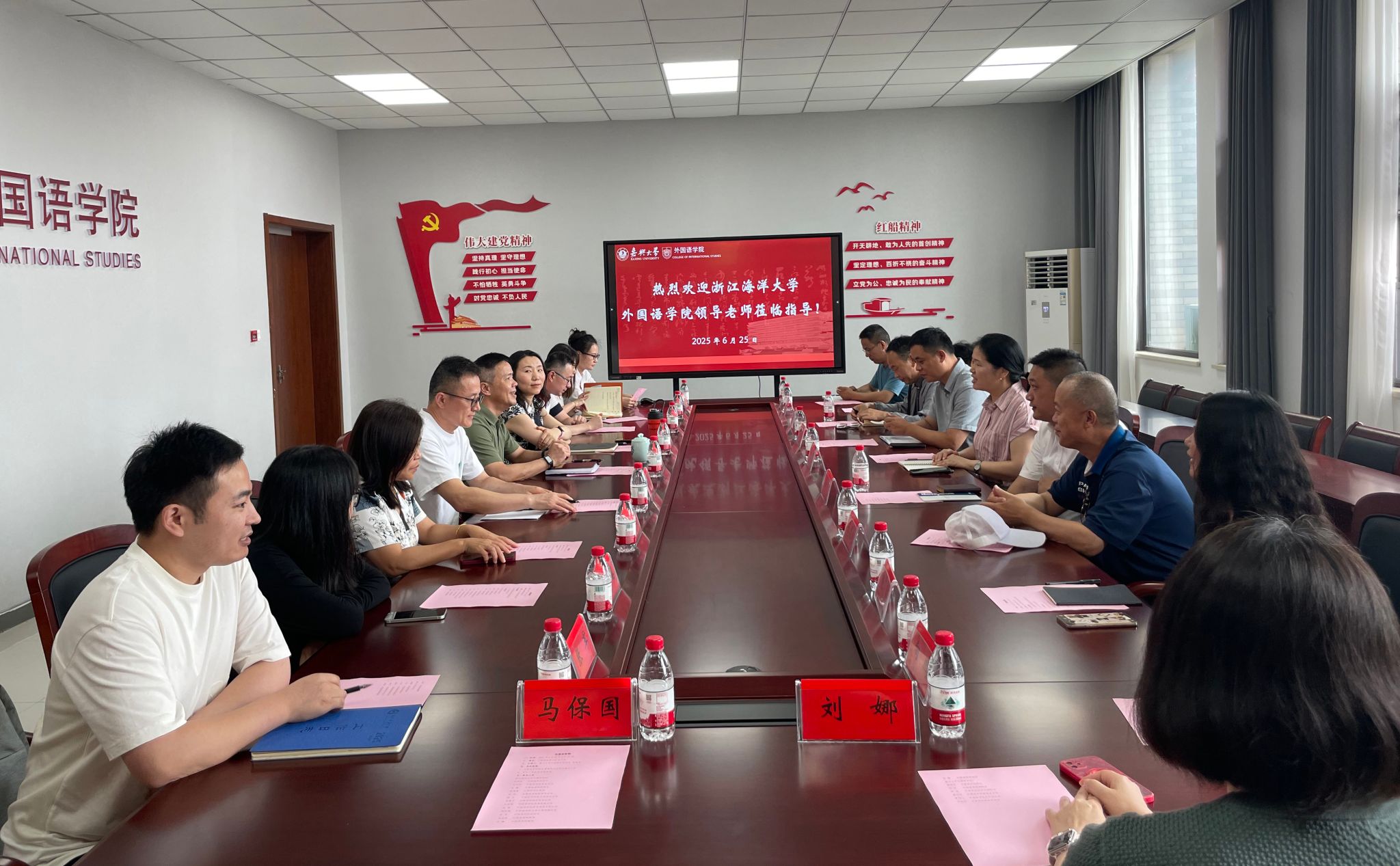 6月25日,浙江海洋大学外国语学院院长钟伟良、党委书记王利明等一行14人来院交流调研。我院院长唐艳芳、副院长邱佳、学术副院长单谊以及系部主任代表等参加交流。