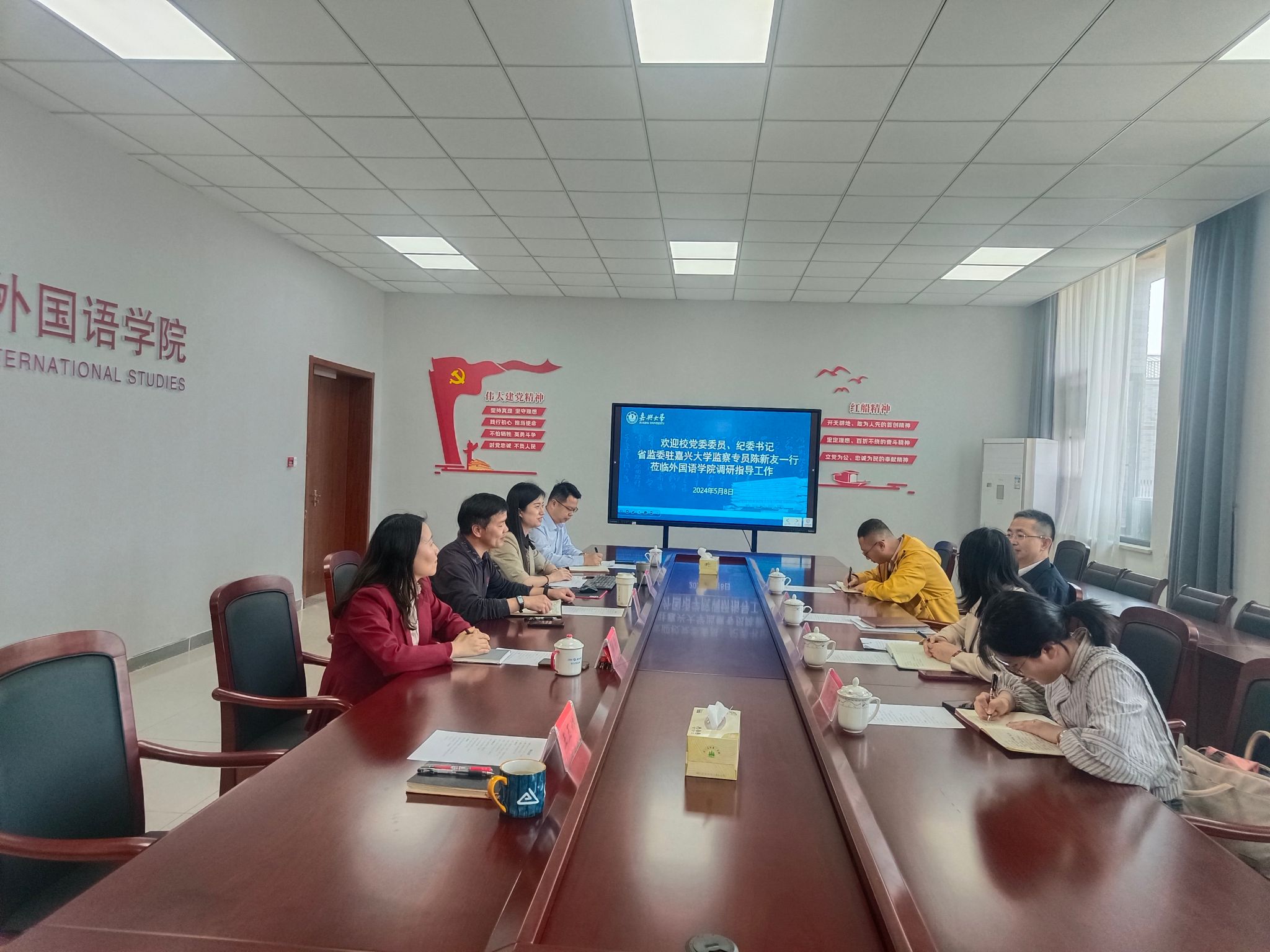 5月8日,校党委委员、纪委书记、省监委驻嘉兴大学监察专员陈新友到外国语学院调研指导工作。纪委副书记、纪检监察室(巡察办)主任杨丽娜,人文社科处、校党委办公室(校长办公室)相关人员陪同调研,外国语学院党政领导班子成员参加调研。