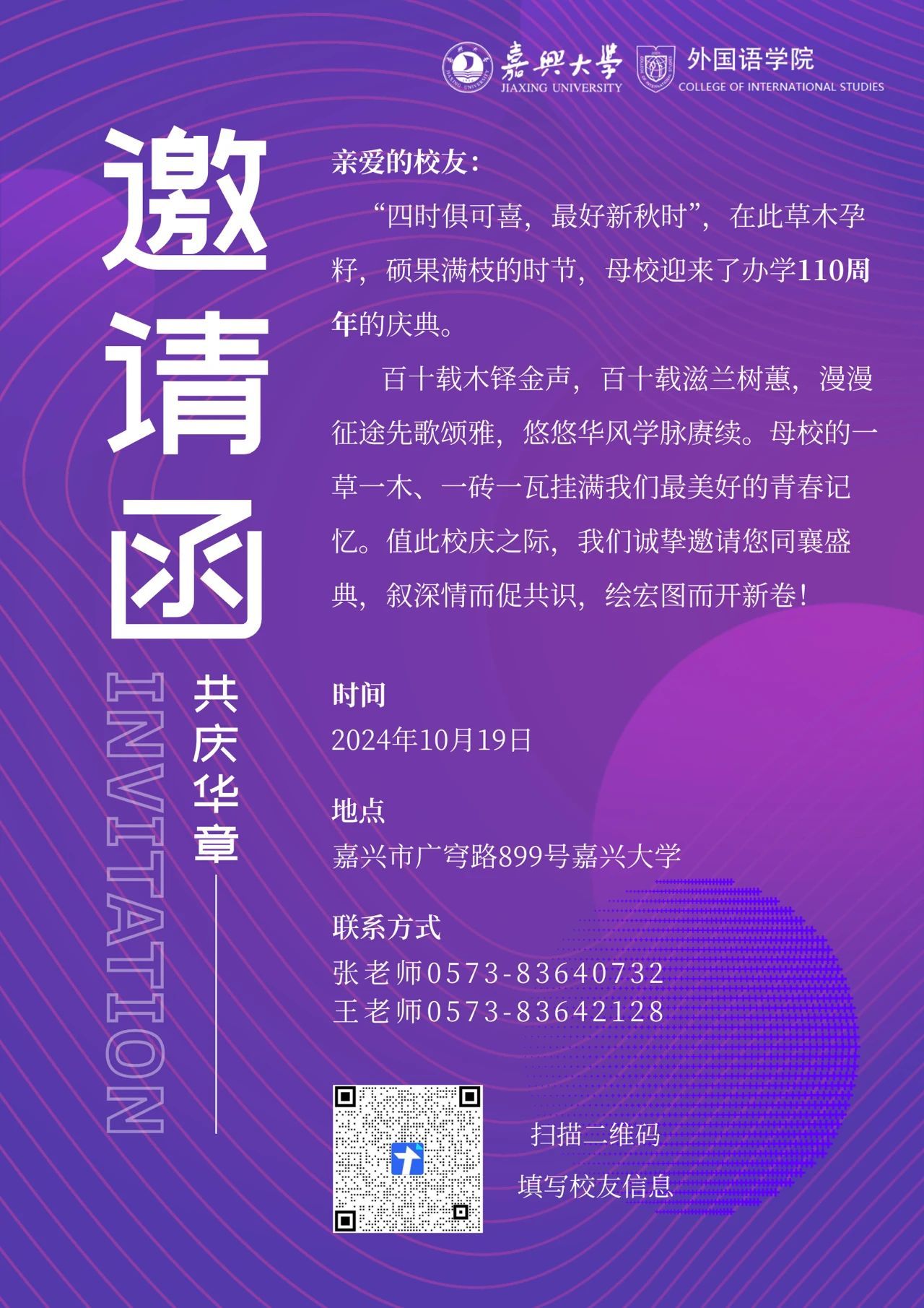 您有一封来自嘉兴大学办学110周年校庆的邀请函等待查收……